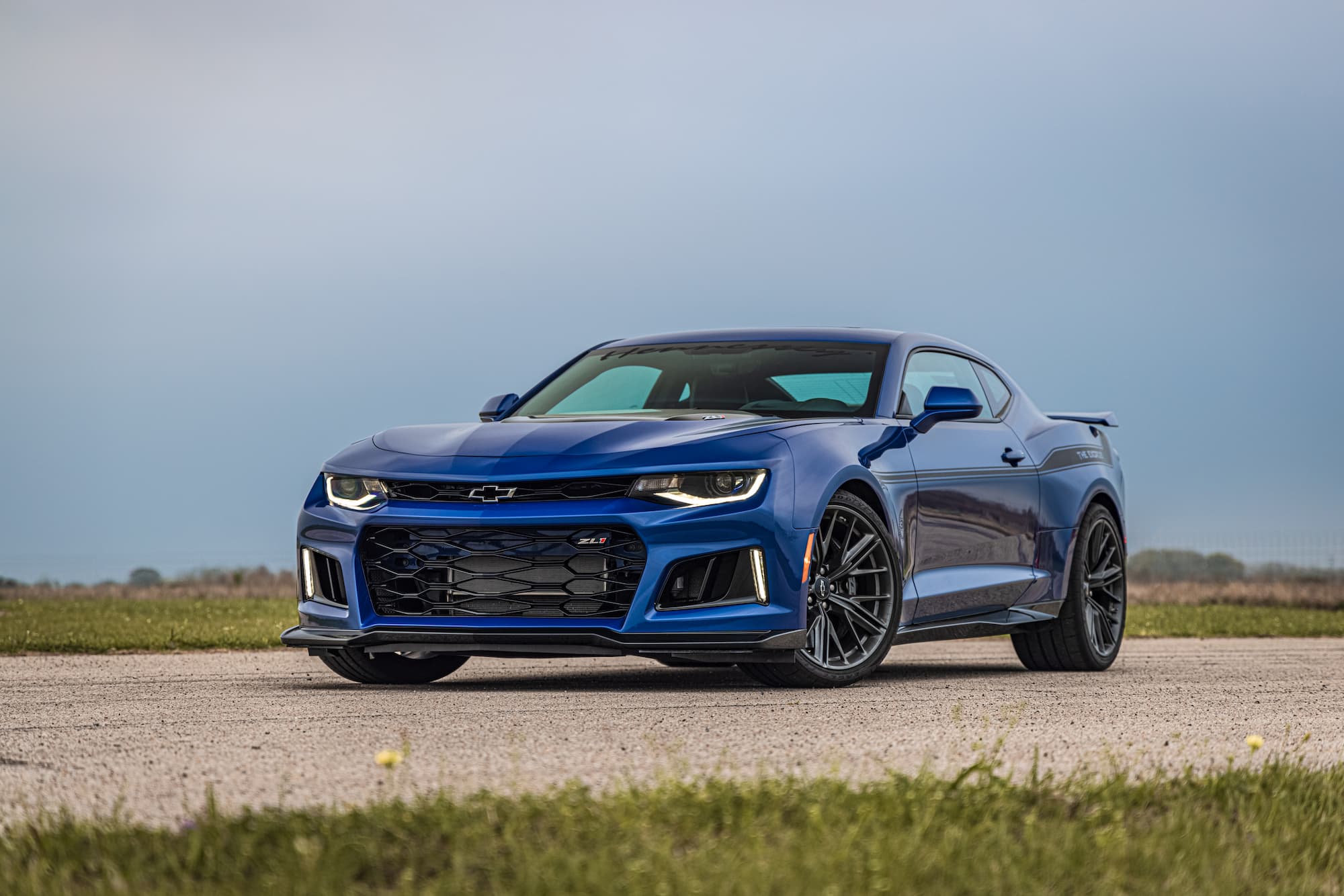 This 2022 Chevrolet Camaro ZL1 for sale is an upgraded version of the stock Chevrolet Camaro ZL1 that produces 1,000 horsepower and 966 lb-ft of torque, making it one of the most powerful muscle cars on the market. The stock Chevrolet Camaro ZL1 comes with a 6.2L V8 engine that produces 650 horsepower and 650 lb-ft of torque. The Hennessey upgrade adds an upgraded supercharger, Custom HPE Camshaft, high-flow air induction system, and other performance-enhancing components. The result is a significant increase in power and torque, which translates into improved acceleration, handling, and braking. The Hennessey EXORCIST Chevrolet Camaro ZL1 is a great choice for anyone who wants a powerful and menacing muscle car.