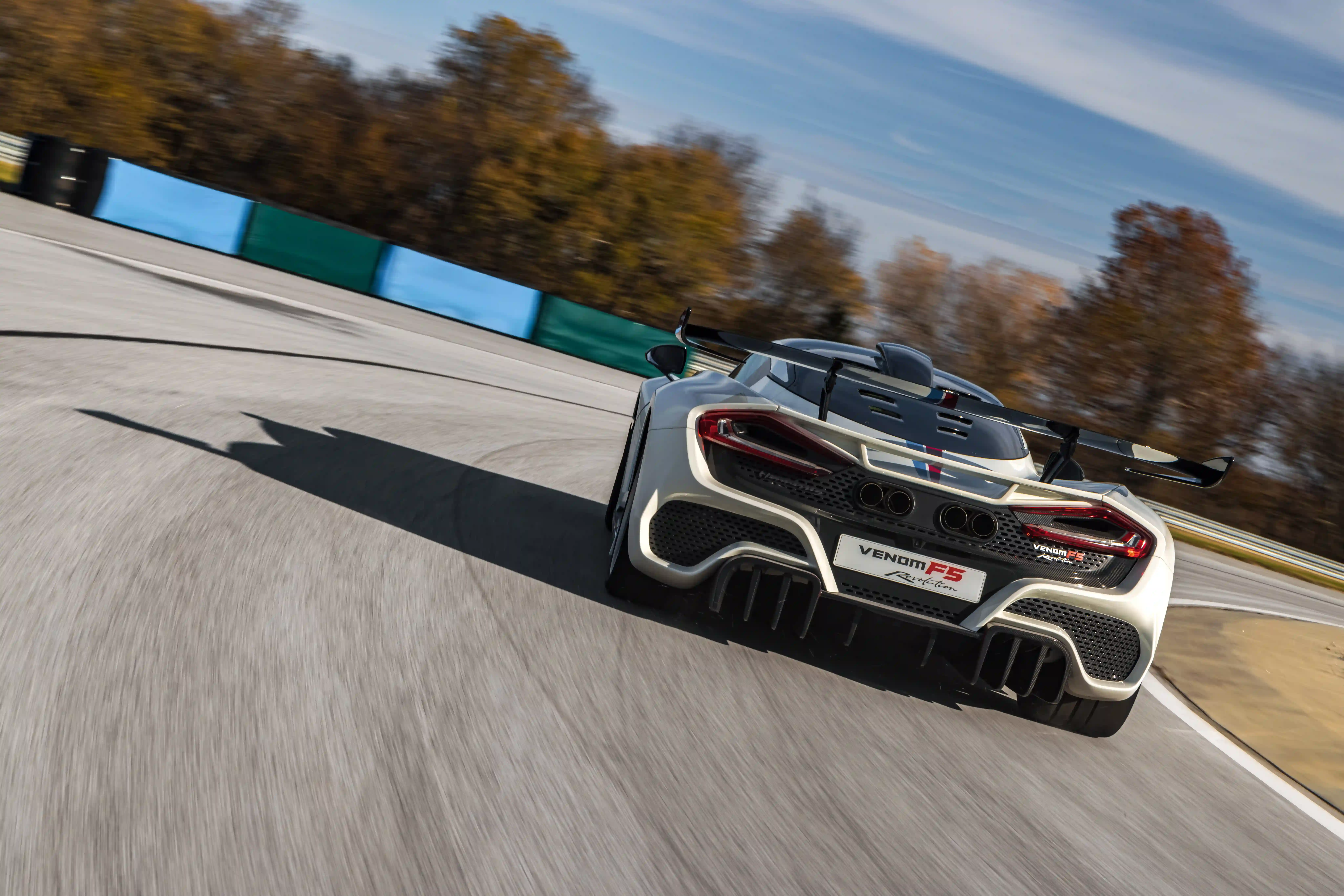The double-wishbone suspension, with more aggressive alignment settings, is fitted with adjustable dampers that may be calibrated trackside with simple tools – thus optimizing the suspension system for the particular road course, racing circuit, or track. In addition, new forged alloy wheels present a larger contact patch for improved cornering grip and enhanced braking. Lastly, Venom F5 Revolution owners are offered a digital on-board track telemetry system capable of measuring an array of data points. These include lap times, splits, cornering G-forces, and more. The system allows the driver to monitor the telemetry in real time, or the data may be saved for later analysis or archiving.